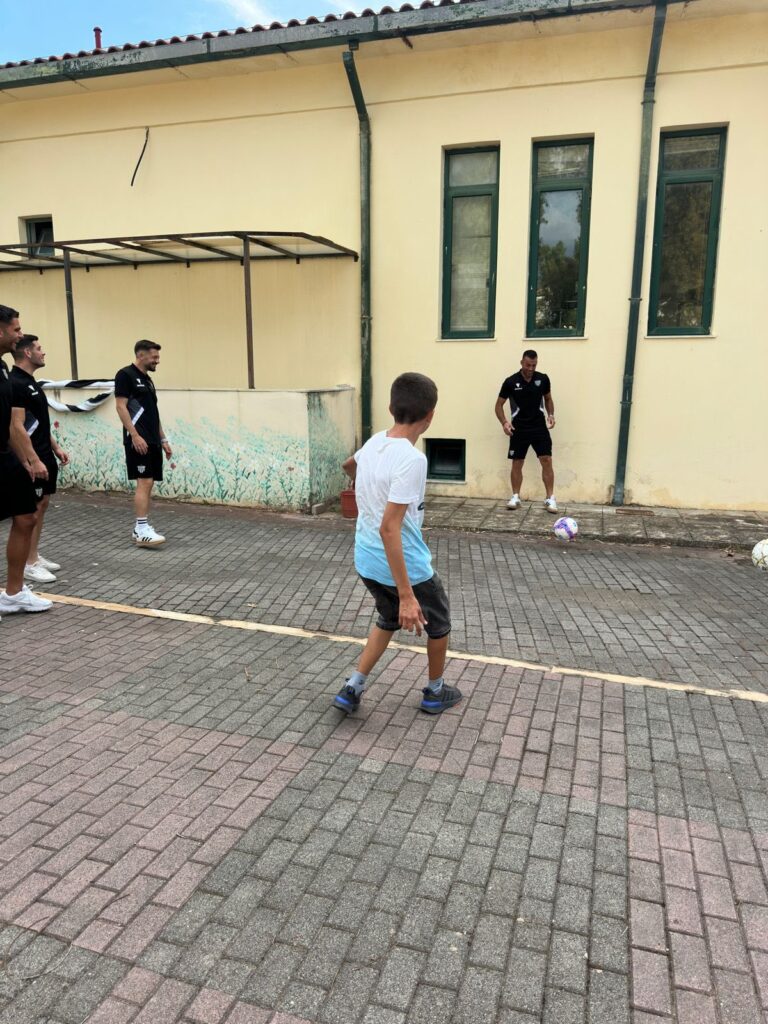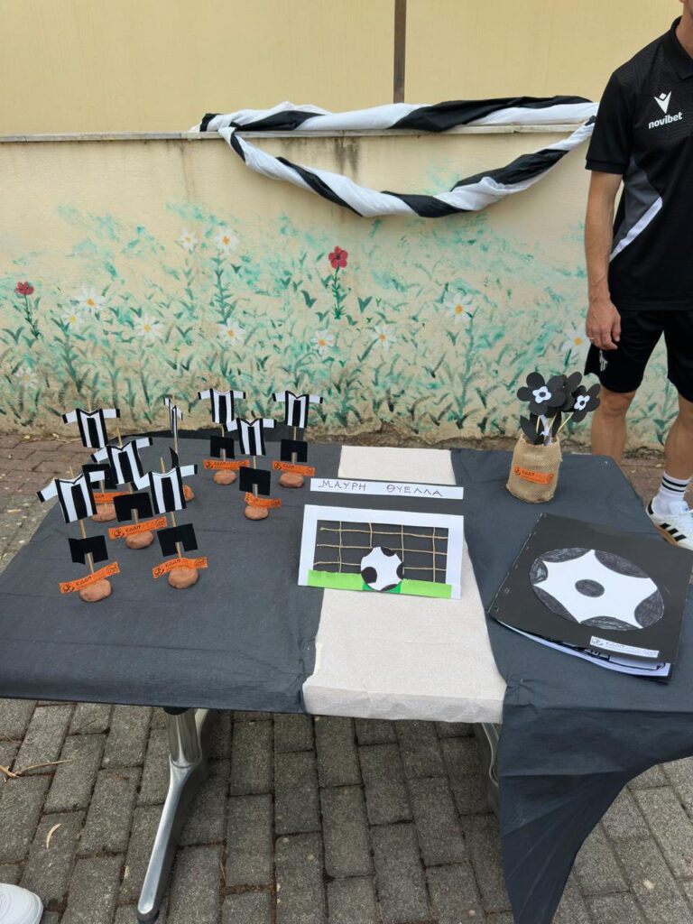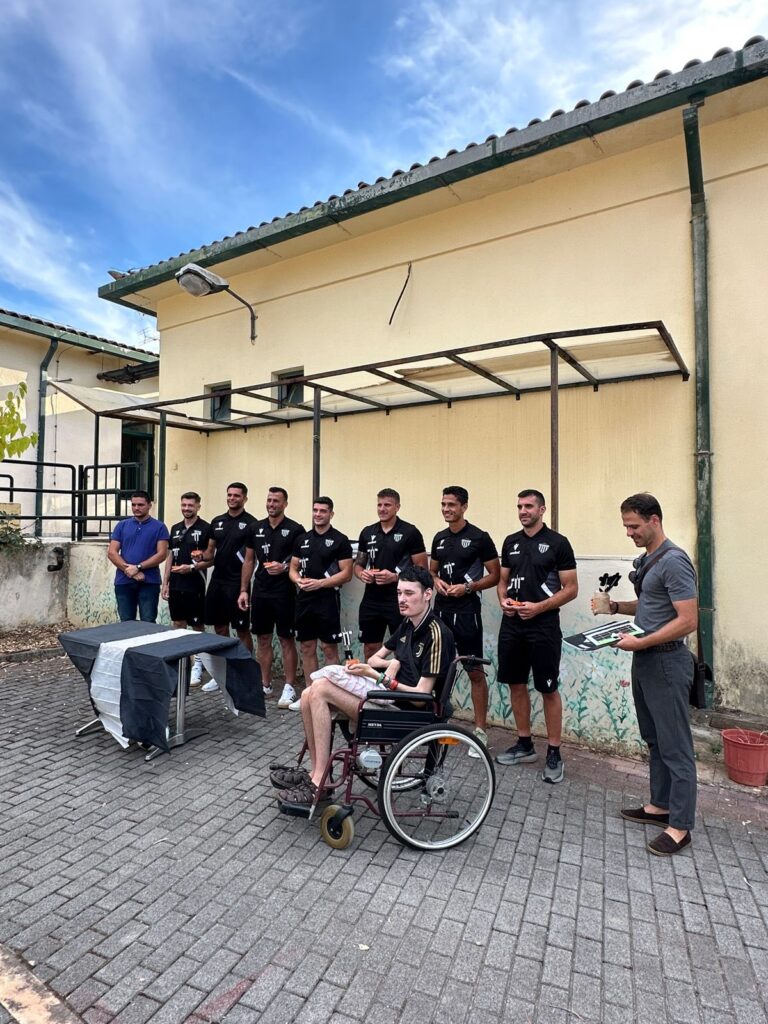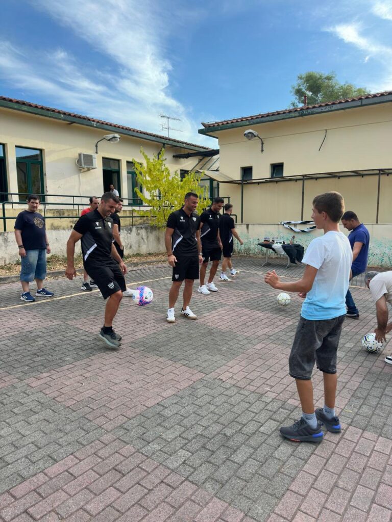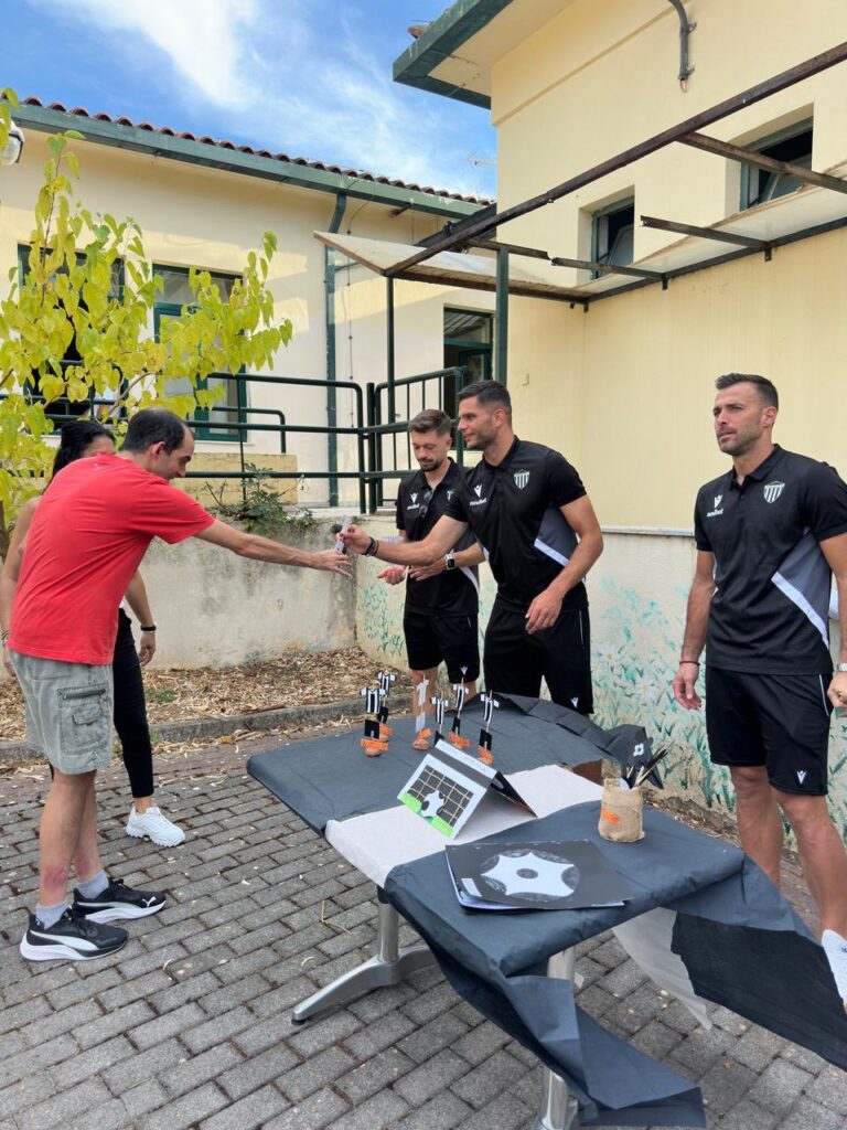 Στο προαύλιο της δομής, οι παίκτες έπαιξαν ποδόσφαιρο με τα παιδιά και τους ενήλικες του ΚΔΑΠμεΑ, ανταλλάσσοντας χαμόγελα και δώρα. Οι ωφελούμενοι μας προσέφεραν υπέροχες χειροποίητες κατασκευές , ενώ η ομάδα μας πρόσφερε μπάλες ποδοσφαίρου – ευγενική χορηγία του συνεργάτη της ΠΑΕ την Zakcret Sports.