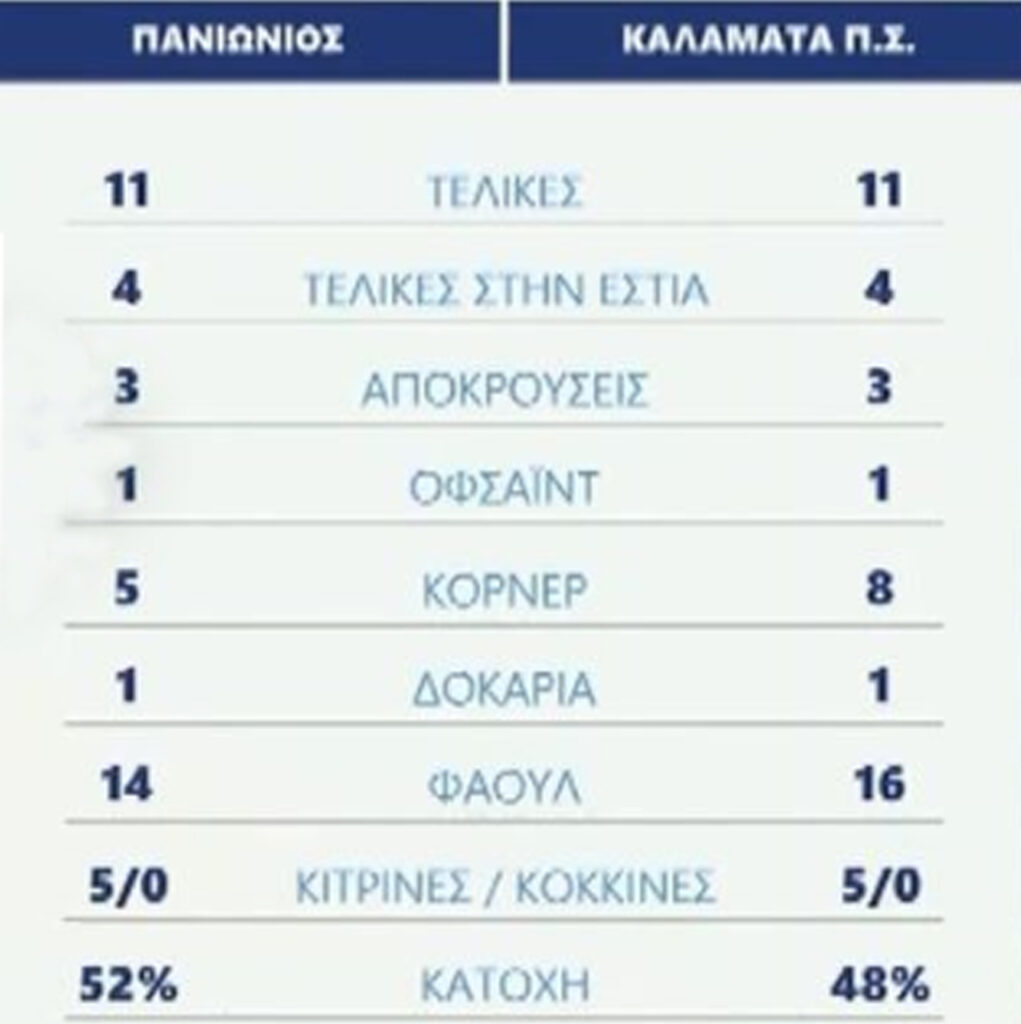 Η Καλαμάτα έδειξε χαρακτήρα και αντοχές, κρατώντας όρθια την ομάδα μέσα σε μια δύσκολη έδρα, ενώ ο Πανιώνιος, παρότι πίεσε μέχρι το φινάλε, δεν κατάφερε να πάρει τη νίκη. Ένα ντέρμπι γεμάτο ένταση, δύναμη και πάθος, με το 1-1 να αφήνει τις ισορροπίες… ανοιχτές στη μάχη για την κορυφή.