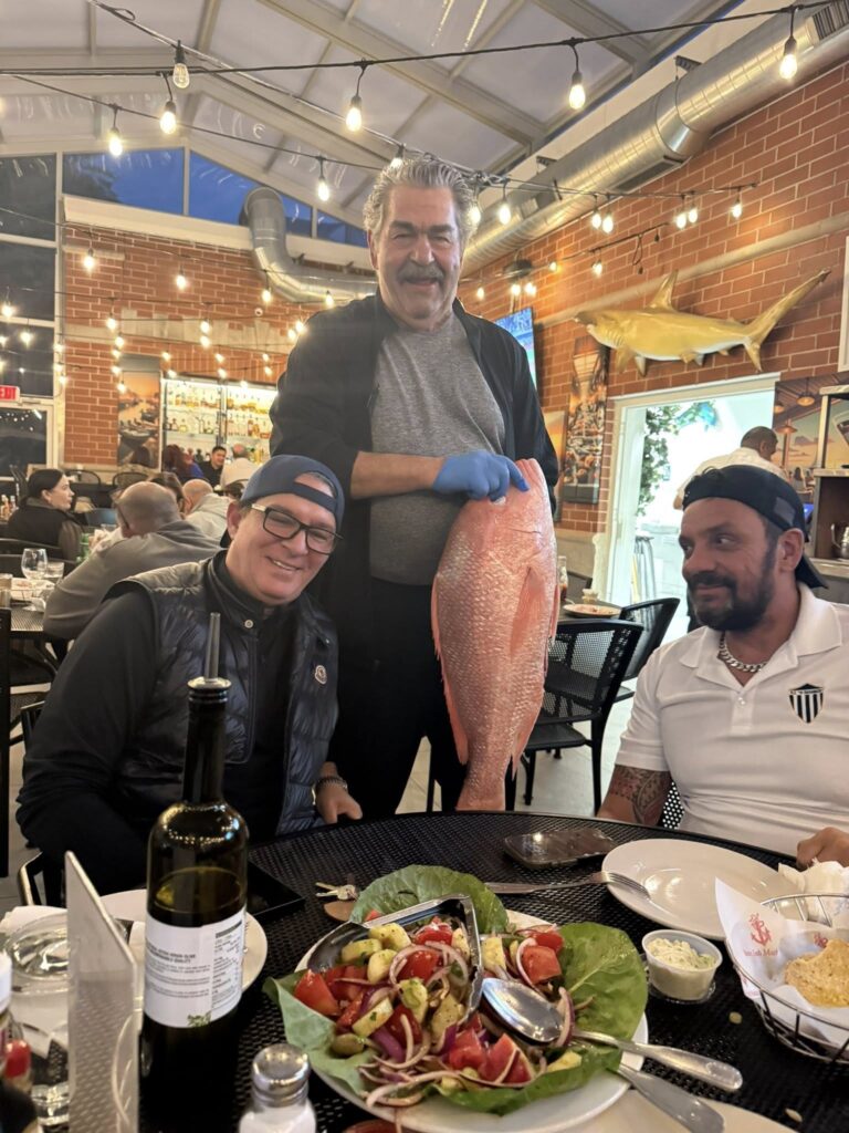 Οι δύο κουμπάροι Γιώργος Πρασσάς με Γιάννη Σβούρα σε βραδινό δείπνο με φίλους στην τοποθεσία Boston Fish Market. Μετά απο μια μέρα με αρκετό φόρτο εργασίας οι δύο Μεσσήνιοι φίλοι και κουμπάροι βρέθηκαν να χαλαρώνουν γευματίζοντας σε εστιατόριο του Σικάγο μιλώντας για Μαυρη Θύελλα παρέα με άλλους φίλους. Ο Γιάννης Σβούρας φοράει στην έξοδο του […]