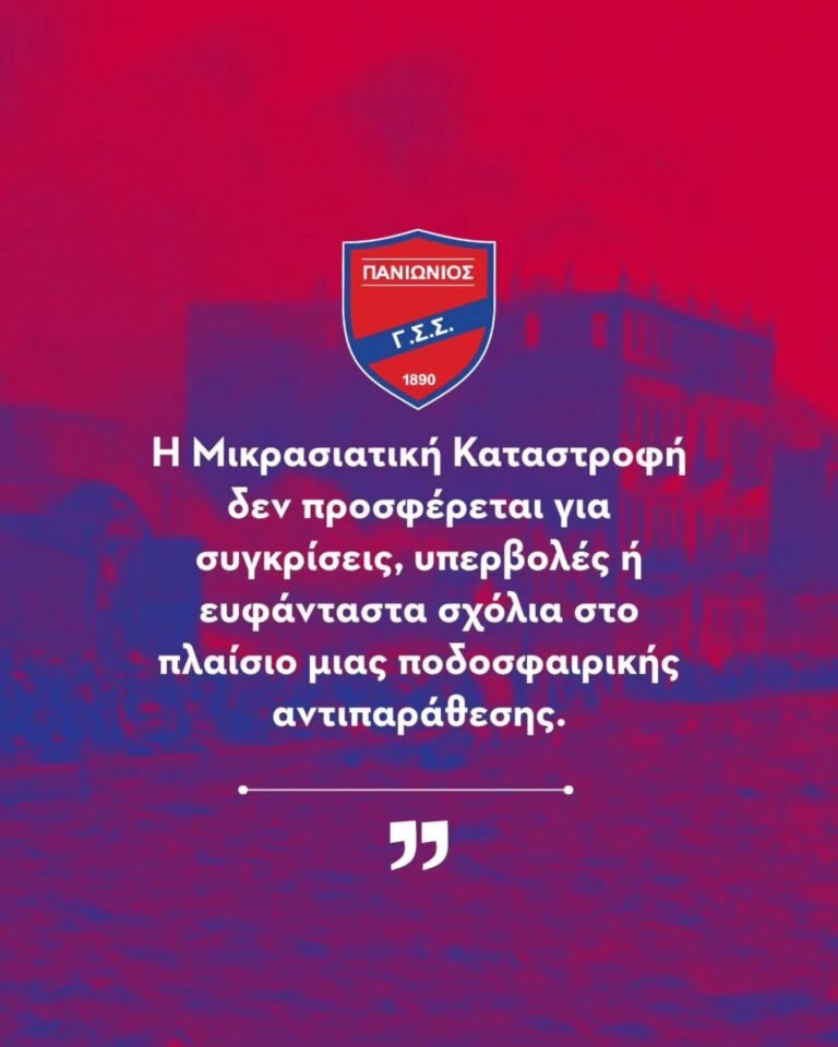Το site Παίζουμε Μπάλα, οι φίλαθλοι της Καλαμάτας και όπως φαντάζομαι και η ομάδα, αισθάνονται την ανάγκη να πάρουν ξεκάθαρη θέση απέναντι στη δημόσια δήλωση του Σωτήρη Γεωργούντζου, η οποία περιλάμβανε αναφορά στη Μικρασιατική Καταστροφή και σύγκριση του καψίματος της Σμύρνης με τους πανηγυρισμούς των φιλάθλων του Πανιωνίου στη Νέα Σμύρνη. Η συγκεκριμένη τοποθέτηση ξεπέρασε […]