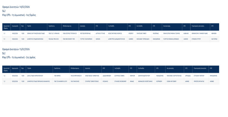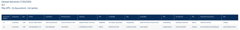 Ορισμοί Διαιτητών 14/02/2026