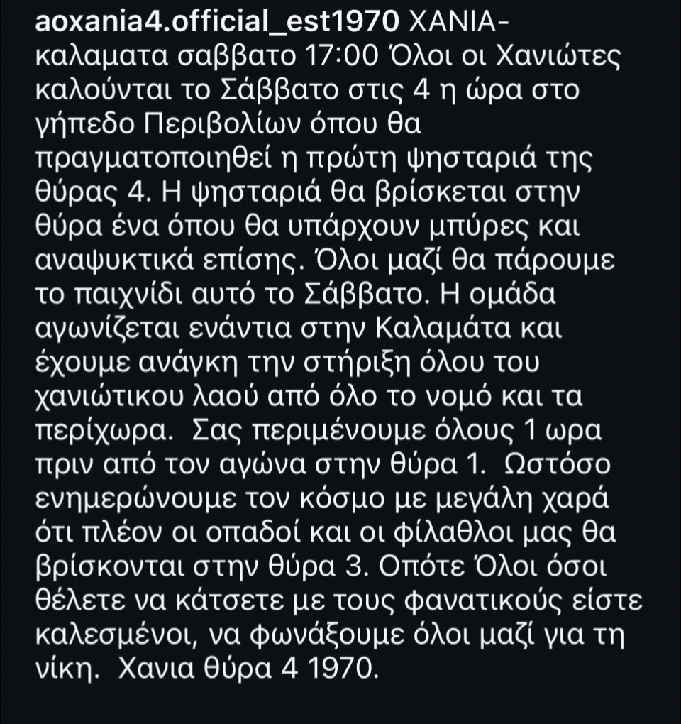 Όλοι Σάββατο 4 η ώρα στο γήπεδο Περιβολίων στην θύρα 3 Δίπλα από την θύρα ένα για...
