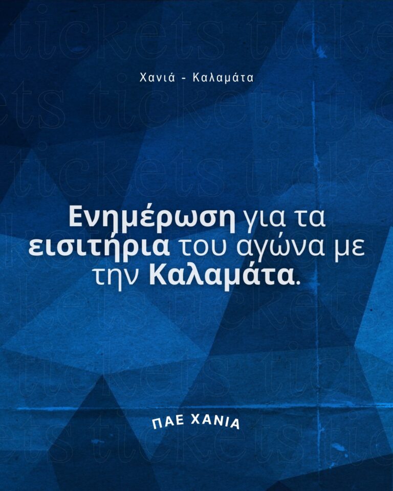 Τα Χανιά υποδέχονται την Καλαμάτα και η κρητική ΠΑΕ έκανε κάλεσμα στον κόσμο να γεμίσει το γήπεδο. ΠΑΕ Χανιά / Chania FC 7 ώρ. · . Το Σάββατο 20/9 στις 17:00 η ομάδα μας υποδέχεται την Καλαμάτα στο γήπεδο Περιβολίων. ️ Εξασφάλισε το εισιτήριό σου: ticketmaster.gr chaniafc.gr εκδοτήρια (από 15:30 την ημέρα του αγώνα) Θύρες […]