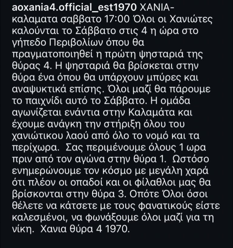 ΧΑΝΙΑ ΘΥΡΑ 4 ΑΝΑΚΟΙΝΩΣΗ